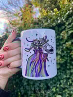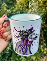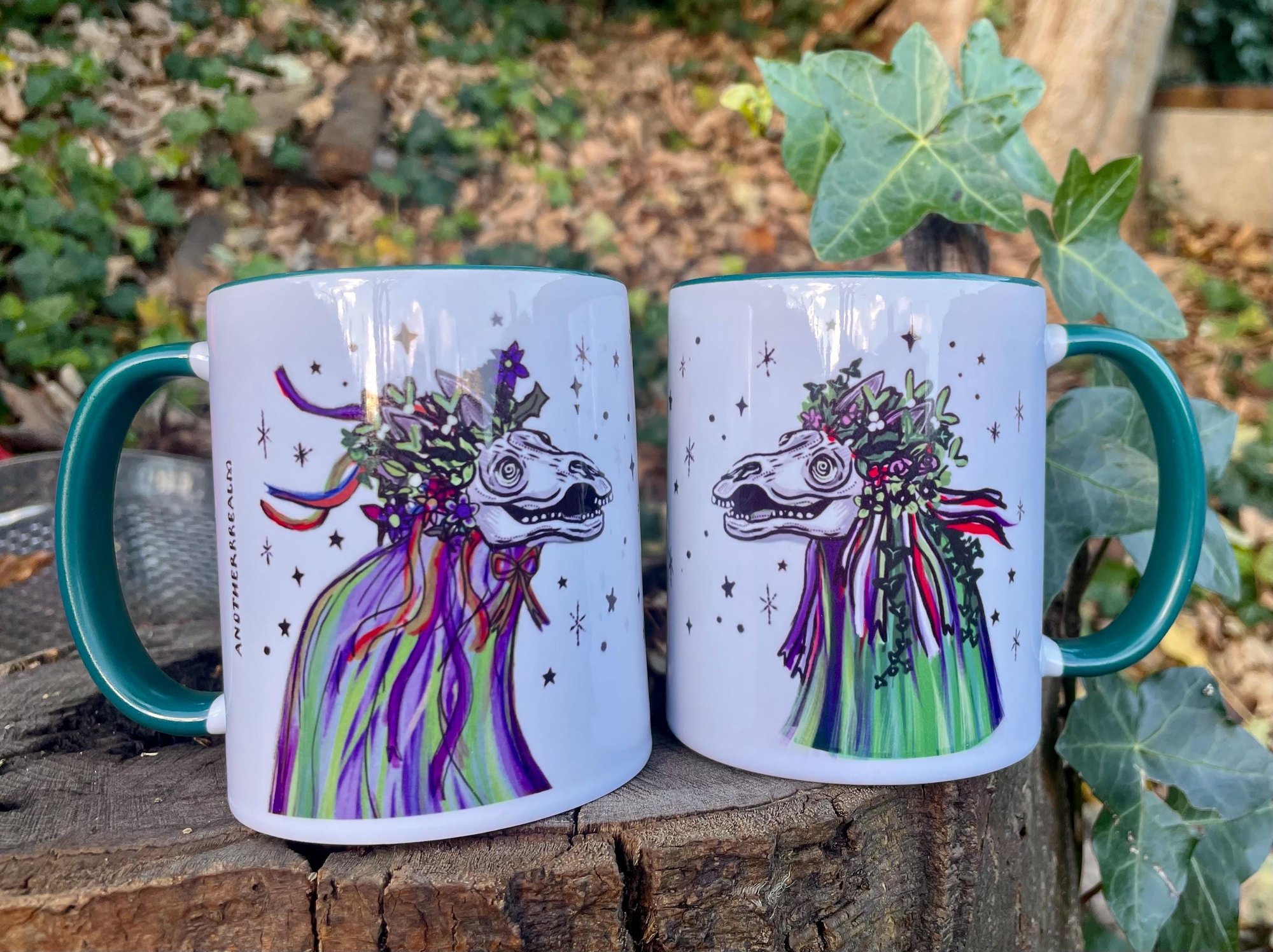 Designed and sublimation printed by me, on lovely forest green handle / rim mug, with a white inner.