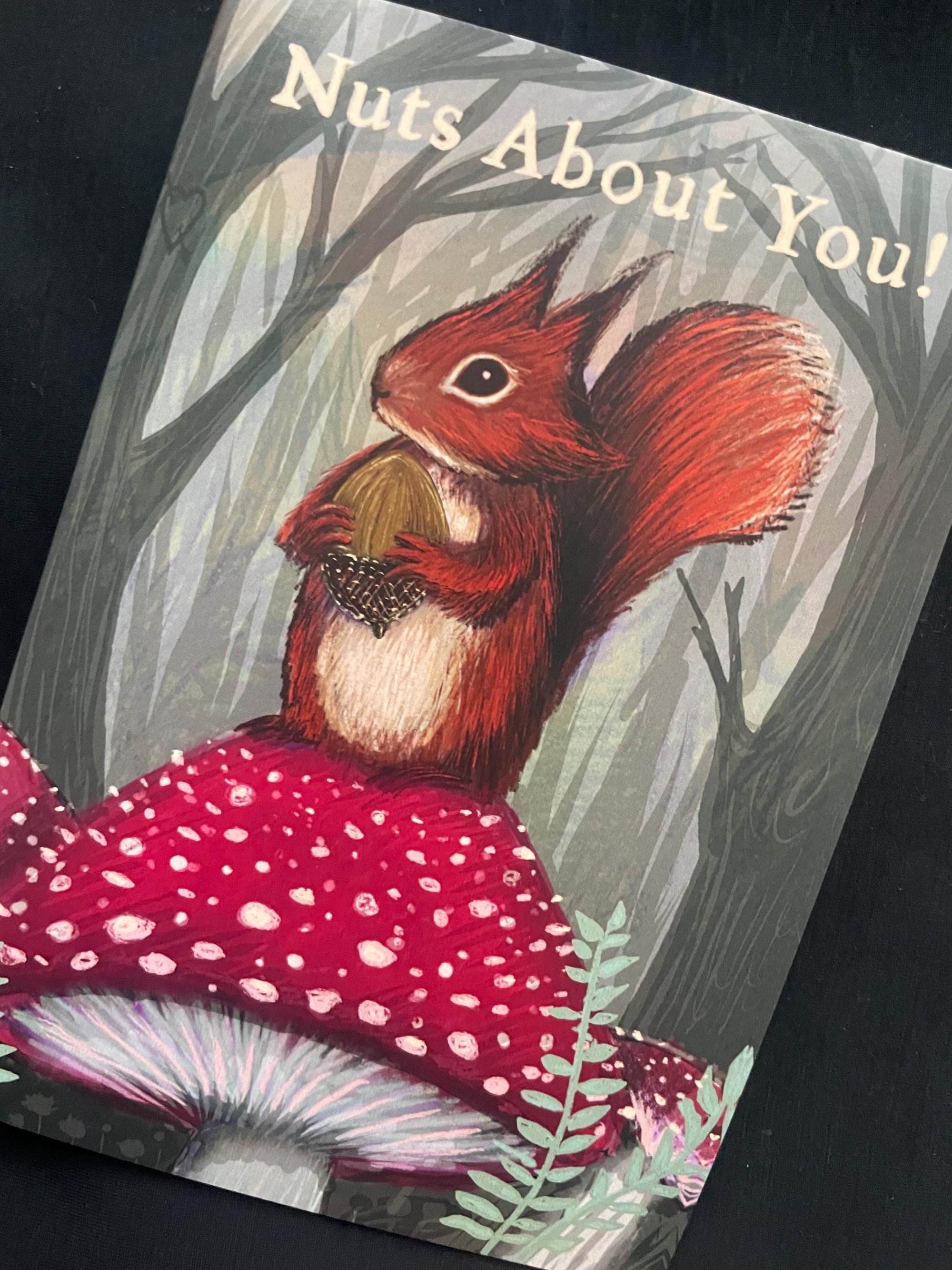 Nuttiness abounds with this sweet squirrel love card! Show your magical someone how you feel with this whimsical card.