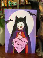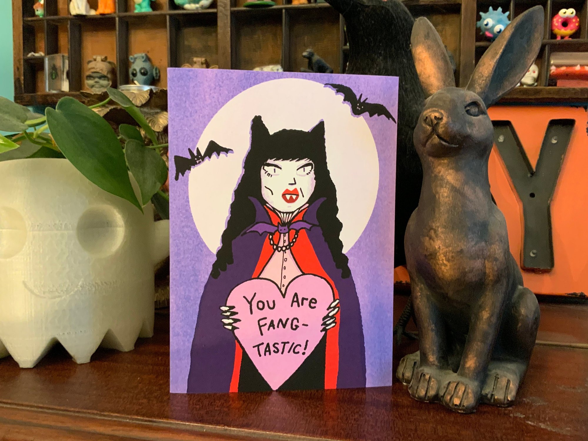 Creepy cool vampy vibe greeting card for your dark hearts, ghoulfriends, and fiendish chums. Inspired by the delectably dark vampire Nadja from What We Do In The Shadows